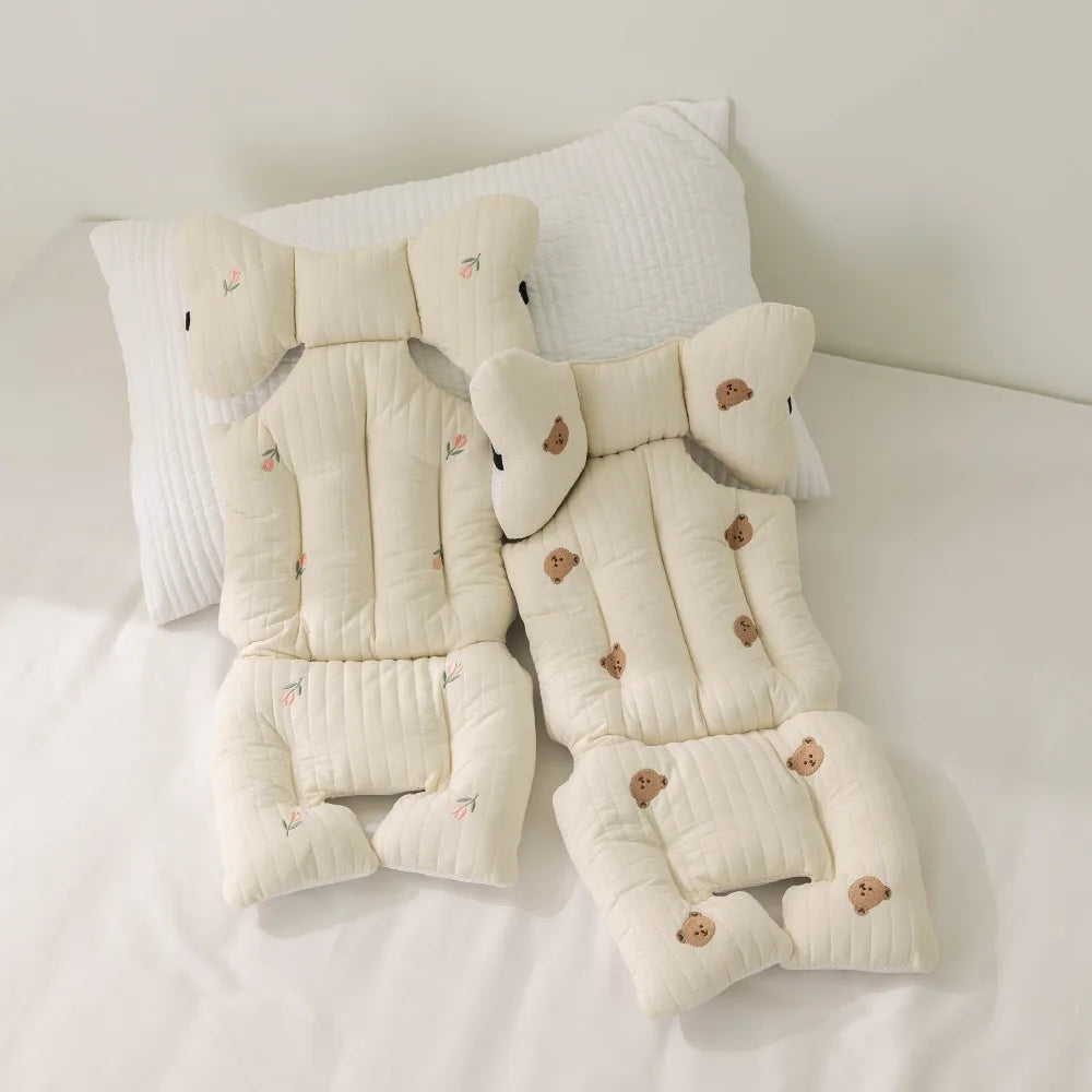 Whether you’re heading out for a sunny stroll, running errands, or taking a car ride, the cushioned design provides extra support for your newborn’s back and body, while the breathable cotton helps regulate temperature to prevent overheating.